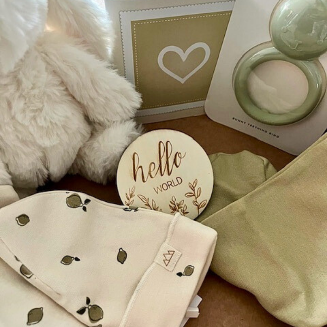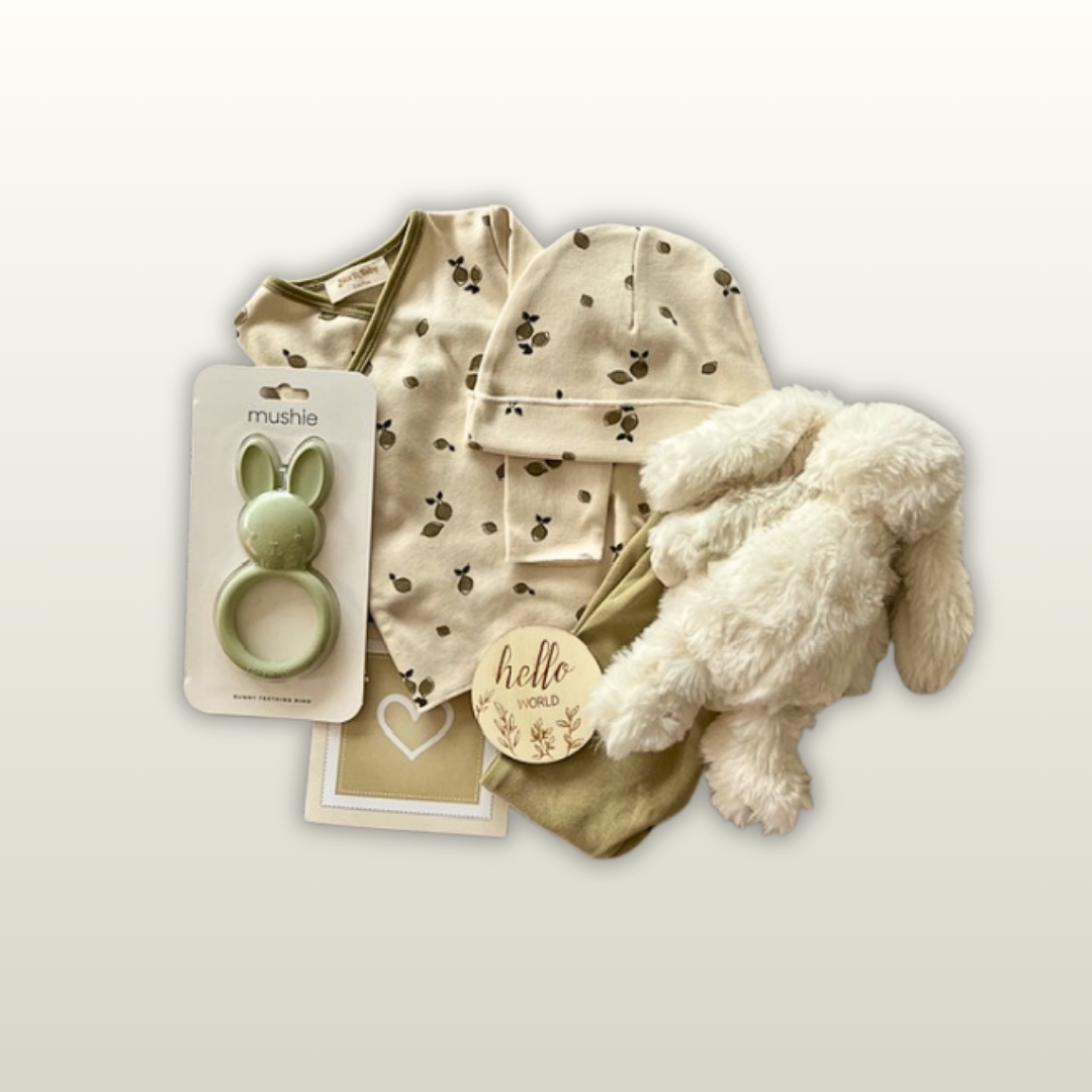A Baby Box Green Leaves reúne uma seleção pensada com todo o carinho para dar as boas-vindas ao bebé, reunida numa caixa kraft, repleto de significado.